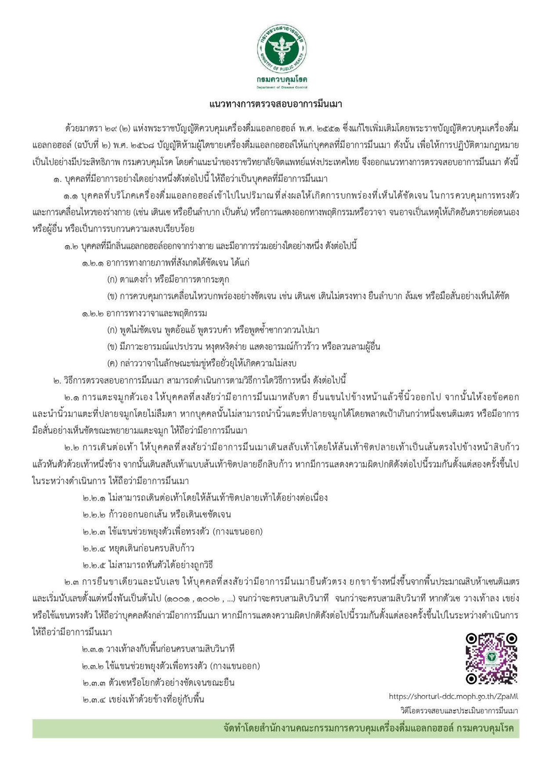 ประชาสัมพันธ์ ✨ สำนักงานคณะกรรมการควบคุมแอลกอฮอล์ กรมควบคุมโรค ได้กำหนดหลักเกณฑ์และวิธีการตรวจสอบอาการมึนเมาเพื่อให้ผู้ขายเครื่องดื่มแอลกอฮอล์ใช้ตรวจสอบอาการมึนเมาของบุคคลเท่าที่จำเป็นและสมควร