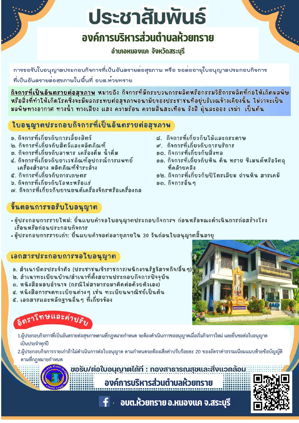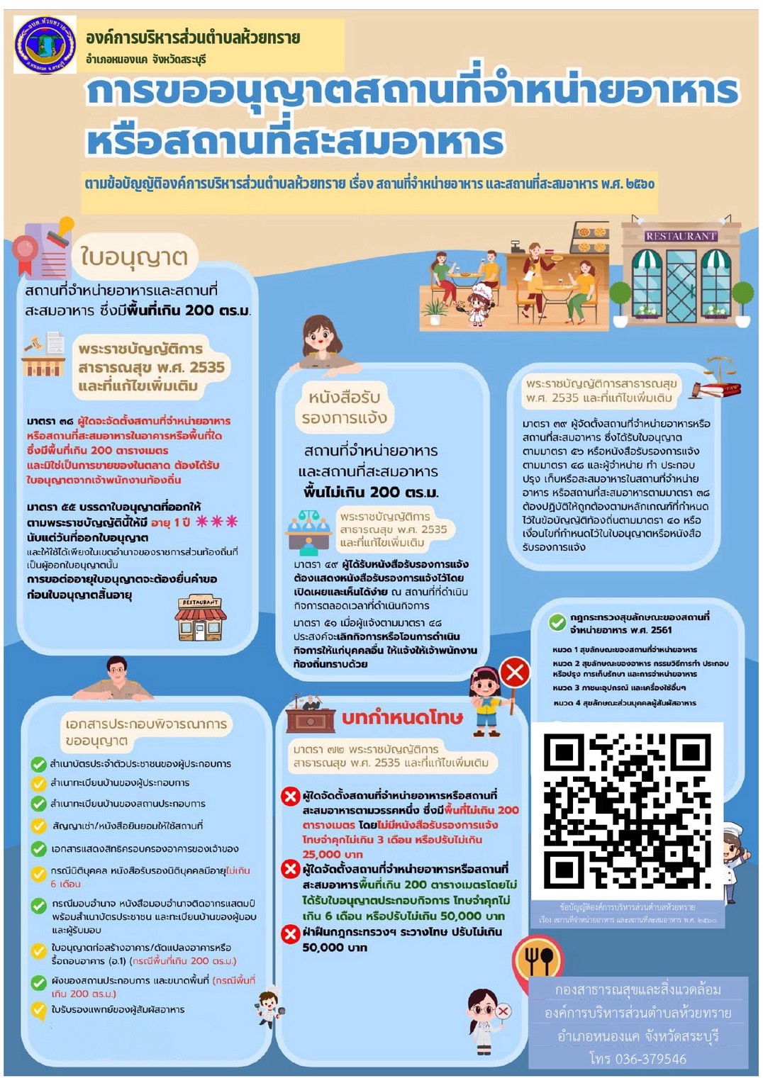 สอบถามเพิ่มเติมโทร. 036-379546 หรือแอดไลน์ผู้ประกอบการเขตพื้นที่ อบต.ห้วยทราย (คิวอาร์โค้ดที่แนบมาในรูปภาพ)